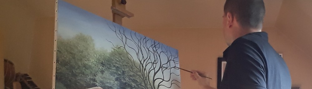 Une fois l’acrylique sèche, j’attaque le ciel à l’huile, je pose d’abord mes couleurs sur la toile et ensuite j’adoucie légèrement les dégradés à l’essence de térébenthine. Je ne soigne pas trop mon dégradé étant donné que le ciel va être entrecoupé de beaucoup de choses. A l’huile toujours prendre en compte la règle du gras sur maigre.