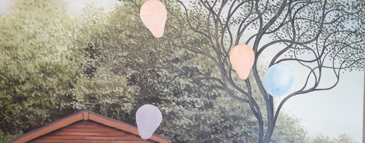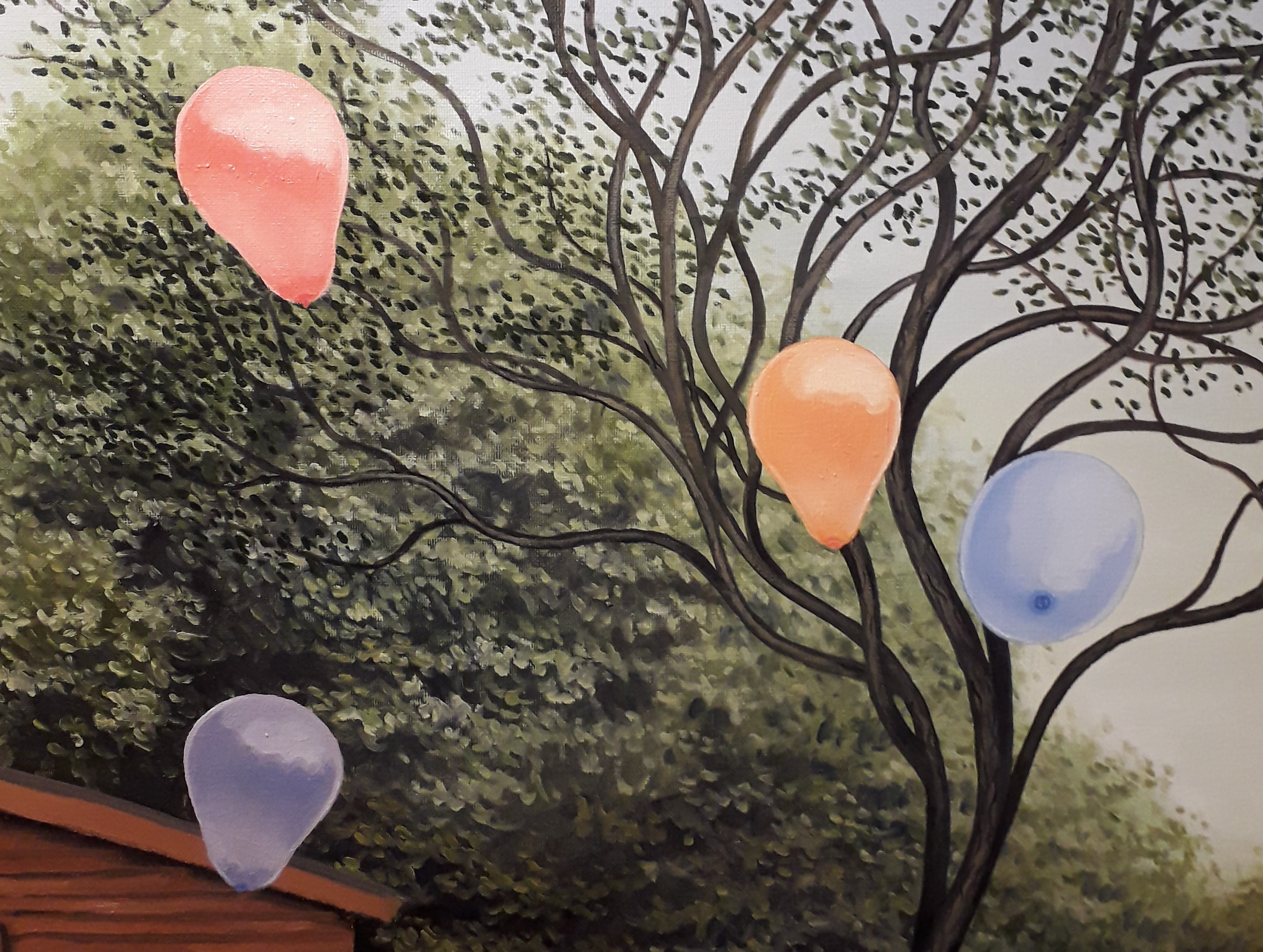 My painting is finished, but after reflection I realize that a balloon harms the harmony of the work so I move it …