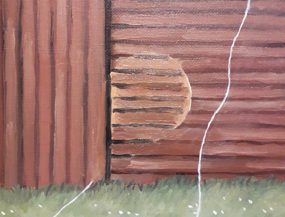 Puis je peins le chalet en bois.